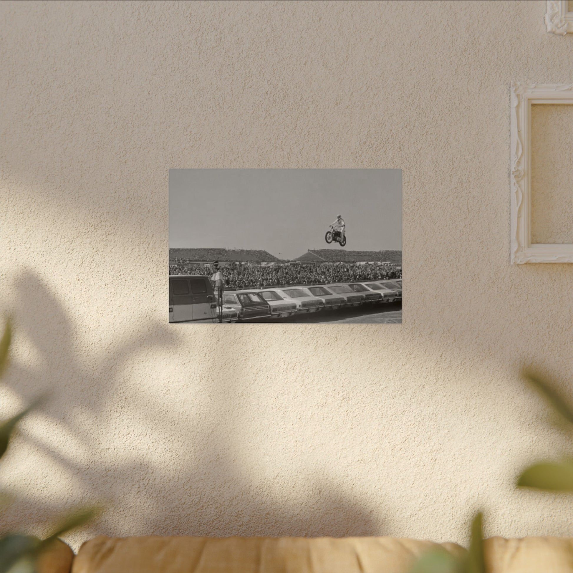 Printed on premium artist-grade canvas with crisp black-and-white contrast, this piece pulls Evel Knievel’s legendary spirit straight into your space. For the believers in bigger risks, louder engines, and living life airborne.