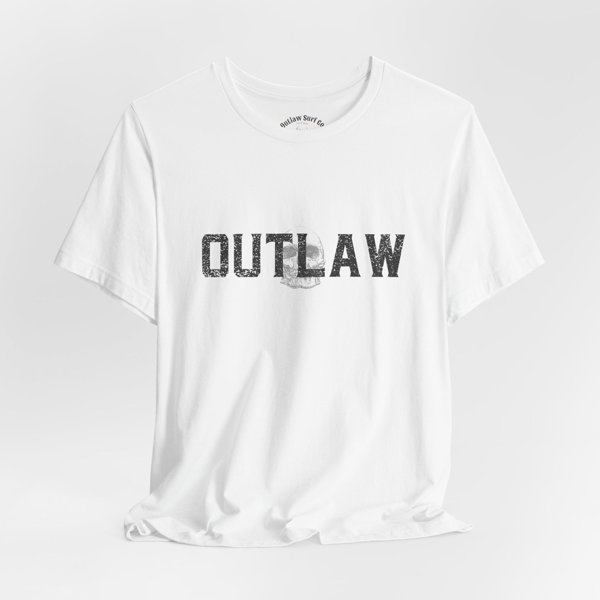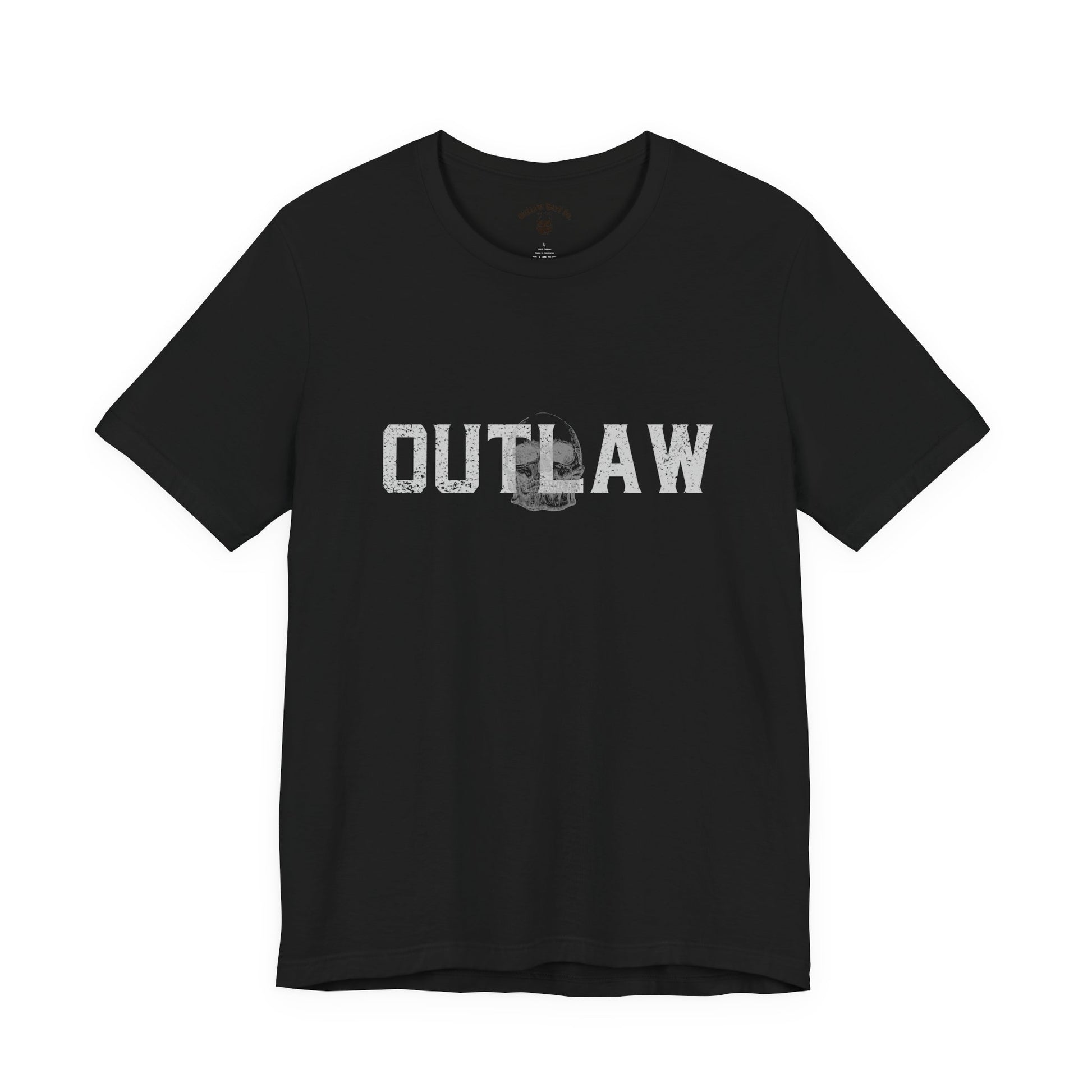 Front: Distressed OUTLAW skull graphic
